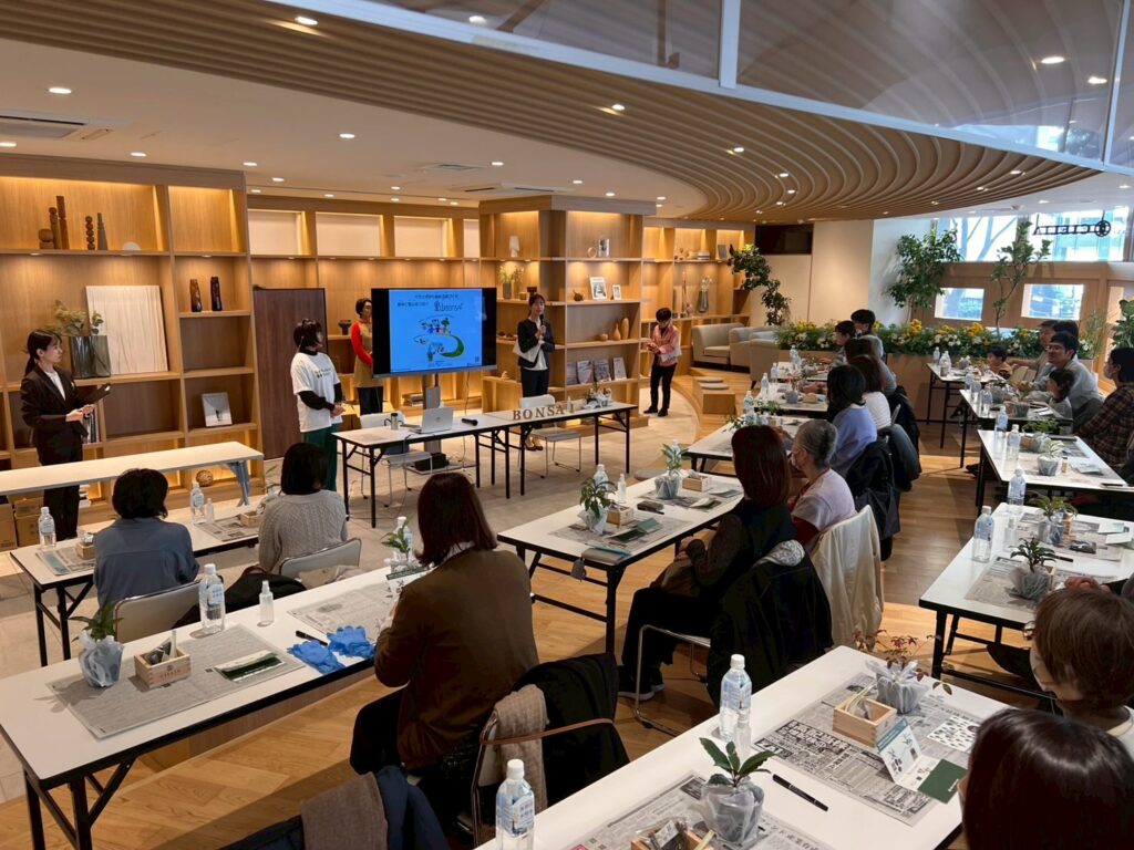 3月7日(土)、関電不動産開発様が、分譲マンション・分譲戸建て「シエリアシリーズ」オーナー様を招いた里山BONSAIワークショップを大阪市内で開催されました。午前の部・午後の部あわせて41名のオーナー様にご参加いただき、代表・鈴木の森の話をお聞きいただいた後、土や苗木に触れてBONSAIづくりをお楽しみいただきました。ご参加いただいた皆様、誠にありがとうございました。